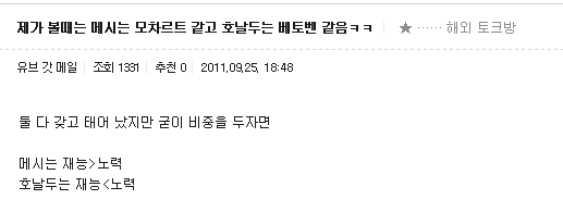 메모호베 - 메시는 모차르트, 호날두는 베토벤