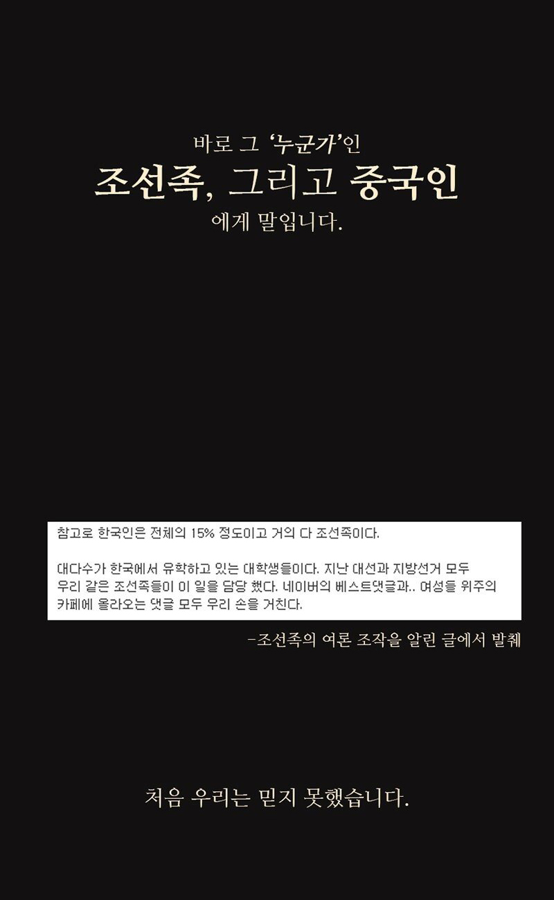 '나는 개인이요' 라는 동조하지않았단 대댓글을 달며 공포에 떠는 모습이 확인됐습니다.