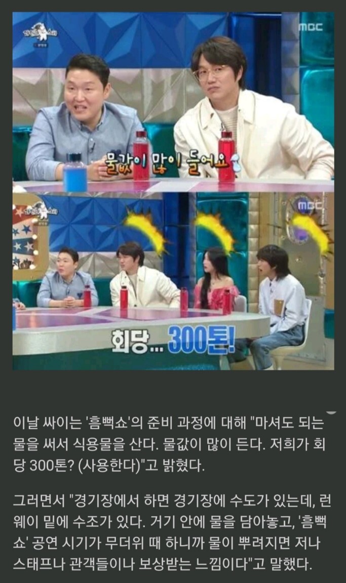 시민 하루 물 사용량이 약 300L라고 한다. 그리고 검색 결과 싸이 흠뻑쇼 인원은 서울 기준 2.5만명이라고 한다.